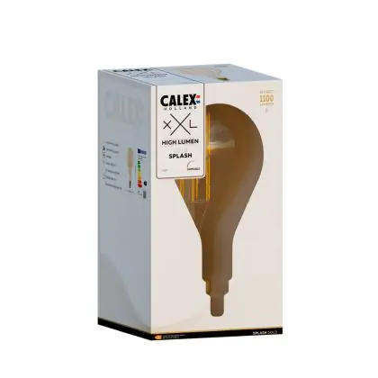 Beschrijving Calex XXL Splash Hoge lumen Goud LED E27 Filament 3W 250lm- 821 Zeer Warm Wit | Dimbaar