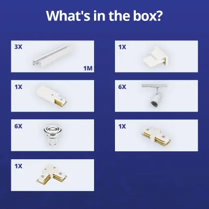 | Fabrikantnaam | Complete L shaped 1-Phase Track Set White incl. 6x Spot fixture + GU10 2700K 3W Dim – 1 x 2 meters i | |