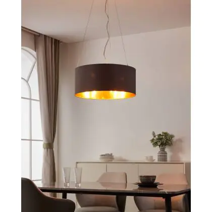 Beschrijving Eglo Pendelarmatuur Maserlo Staal Satijn Nikkel | Geschikt voor 3x E27
