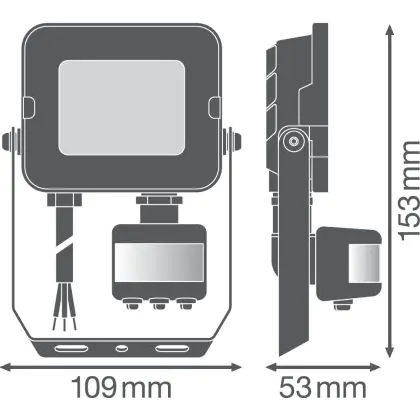 Beschrijving Ledvance LED Breedstraler Compact Zwart 10W 900lm 100D - 830 Warm Wit | IP65 - Symmetrisch - Bewegings- en lichtsensor