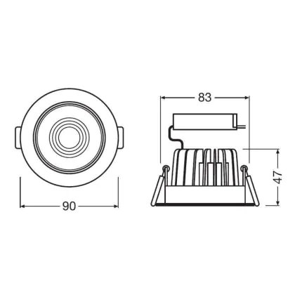 Beschrijving Ledvance LED Spot Kantelbaar 8W 660lm 36D - 840 Koel Wit | Zaagmaat 68mm - IP20 - DALI Dimbaar