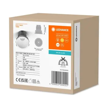 Beschrijving Ledvance LED Spot Twist Pro Aluminium Wit Reflector 5W 400lm 30D - 830 Warm Wit | 70mm - Zaagmaat 65mm - IP20