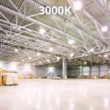 Deze LED High-bay bezit een enorme lichtopbrengst van 26000 lumen! Dit hoge aantal laat zien dat een armatuur zoals deze ook vanaf een grote hoogte nog steeds zijn werk doet. Hang je een High-bay armatuur zoals deze in een ruimte met lagere plafonds, dan is de hoeveelheid licht simpelweg te krachtig en te fel. Met als gevolg dat wanneer mensen in het licht kijken, ze direct worden verblind. Vanaf hoge plafonds (6 tot 14 meter) is dat een ander verhaal. Ook niet onbelangrijk om op te letten is de kleurtemperatuur. Deze is bij dit product: 3000K - Warm Wit. Twijfel je over de juiste kleurtemperatuur voor een grote oppervlakte? Kies dan voor koel wit (4000K). Deze lichtkleur heeft een natuurlijke tint en houdt werknemers in productie-omgevingen alert.
