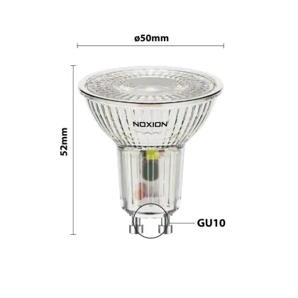 De basis van een GU10 LED lamp is voor ieder exemplaar hetzelfde: ze werken direct op netstroom (230V) en hebben een handige GU10 fitting met twee pinnen die 10mm uit elkaar staan. Noxion hecht veel waarde aan het gebruiken van de beste materialen en de nieuwste LED technologieën. En dat alles tegen een zo voordelig mogelijke prijs! Een Noxion GU10 spot is hierdoor voor iedereen een juiste oplossing, met ook nog eens 2 jaar garantie. Je kunt er ook voor kiezen om een LED geïntegreerde inbouwspot aan te schaffen. Opties hierbij zijn een waterdicht (IP-waarde), een schokbestendig (IK-waarde) en/of een kantelbaar armatuur (object in een spotlight zetten).