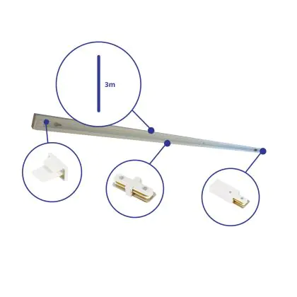 Beschrijving Rail Set 1-Fase 3 Meter Wit | incl. Eindkap, Voedingsconnector en I-Verbindingsstuk