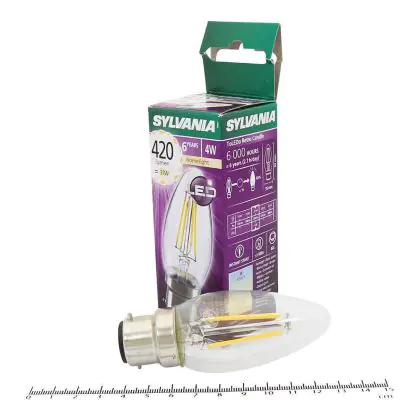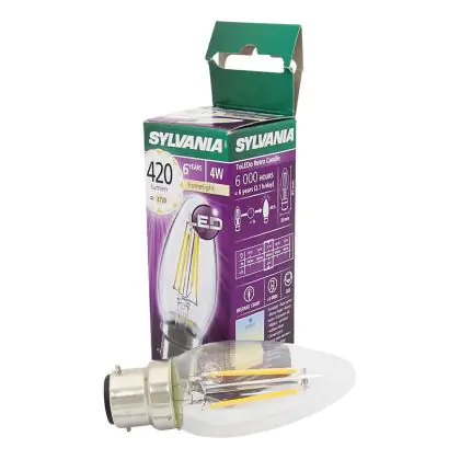Beschrijving Sylvania ToLEDo B22 Kaars Filament Helder 4W 420lm - 827 Zeer Warm Wit | Vervangt 40W
