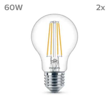 Beschrijving Voordeelpak 2x Philips Lamp LED E27 Peer Filament Helder 7W 850lm - 840 Koel Wit