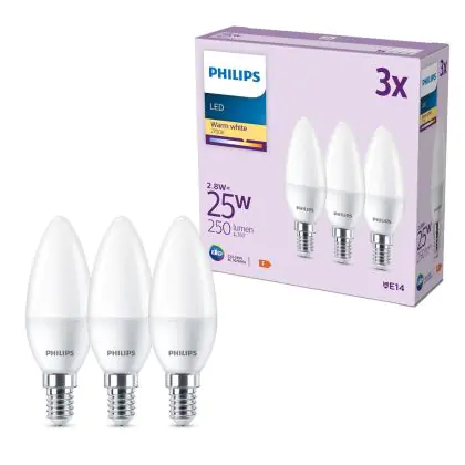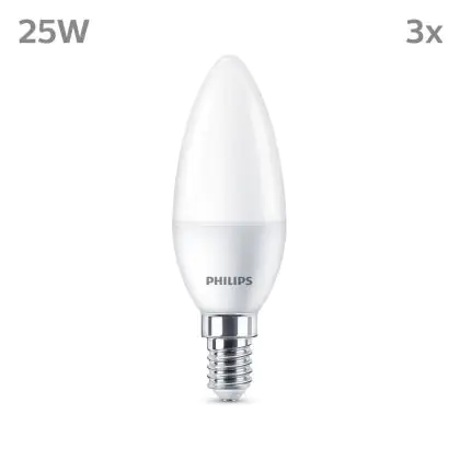 Beschrijving Voordeelpak 3x Philips Lamp LED E14 Kaars Mat 3W 250lm - 827 Zeer Warm Wit