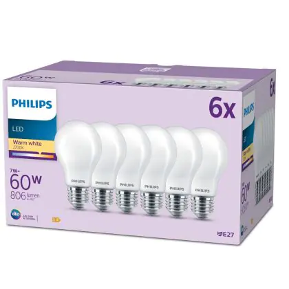 Beschrijving Voordeelpak 6x Philips Lamp LED E27 Peer Mat 7W 806lm - 827 Zeer Warm Wit